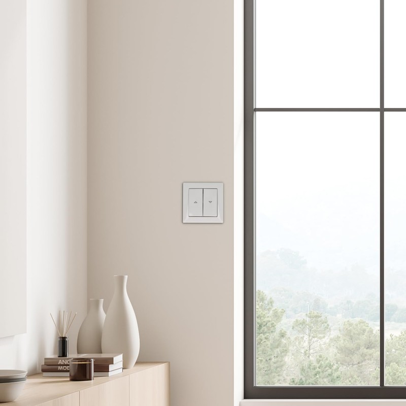 This flush-mounted button is ideal for precise, manual control of blinds and awnings. The rocker automatically jumps back to the starting position after releasing - ideal for short-term operation or targeted stops.