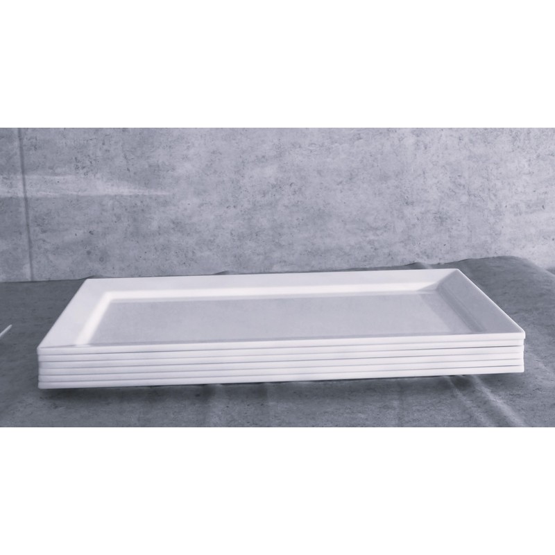 - These versatile plates can be used for all of your dinner entrees, appetizers, desserts, cupcakes, cheese assortments, pastas, dinner salads or what have you! They feature beautiful sleek rectangular style with concave center, curved rim design that allows for better retention of moisture for your meats and makes stacking the plates much easier. The platter lip all around the edge prevents the food from running away.