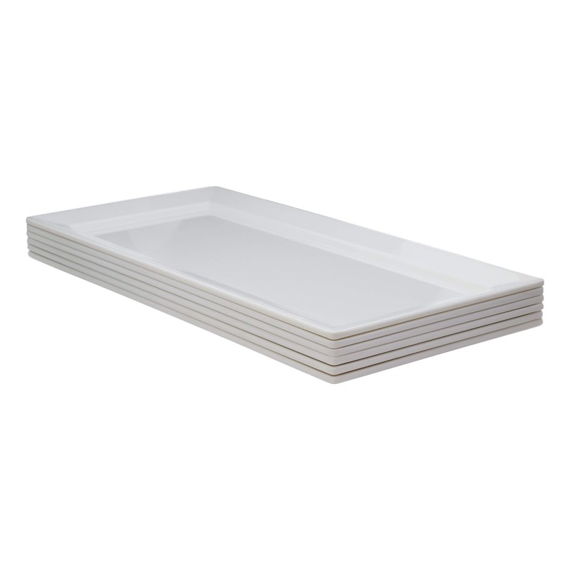 - This white contemporary rectangular serving plate is made of restaurant grade jade melamine. It is dishwasher safe but NOT microwave safe. Because they are made of melamine, this serving platter is perfect for high-volume restaurants and private parties due to its shatter- and stain-resistant properties. Therefore, this serving plate will sustain long-term use while maintaining its colors and overall quality.