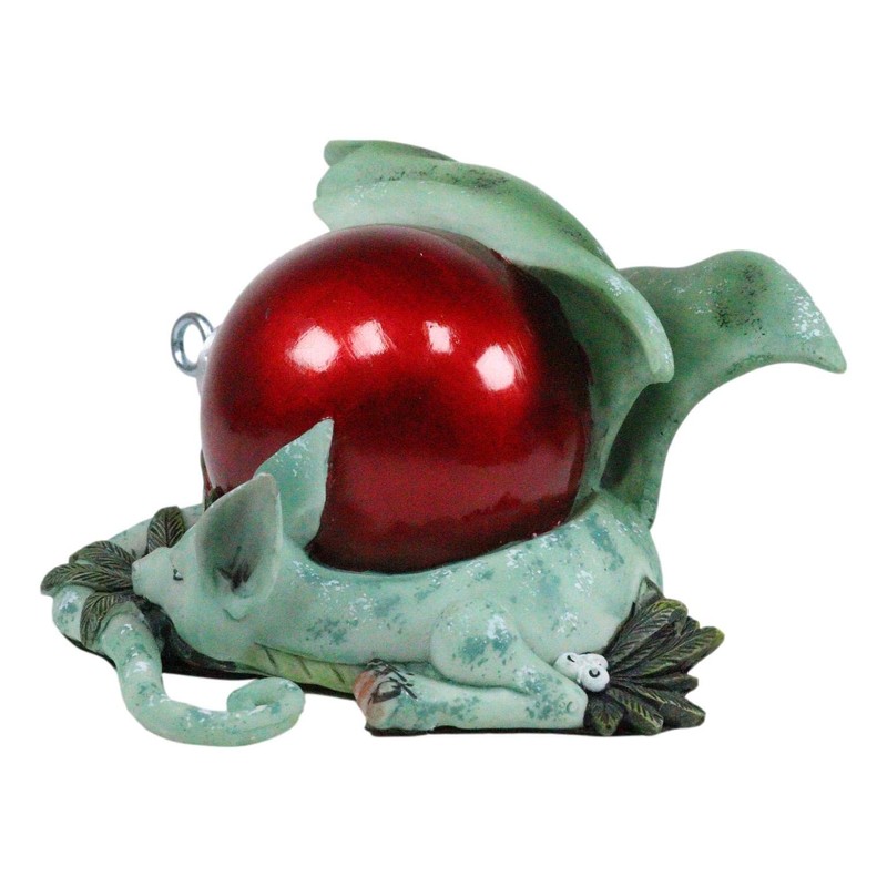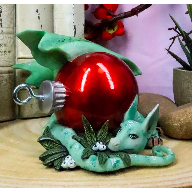 Ebros Amy Brown Holiday Green Mistletoe Treasure Dragon Sleeping by Red Ornament Figurine 5.5" Long Fantasy Wyrmlings and Dragons Faery FAE Garden Christmas Timeless Collectible