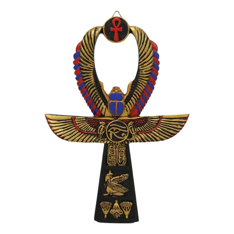 Ebros Crux Ansata エジプトゴールデンアンク 羽付き スカラベ マットとホルスの目 壁装飾 3Dプラーク 置物 高さ8インチ ヒエログリフ 生命の健康とバランス装飾アクセント