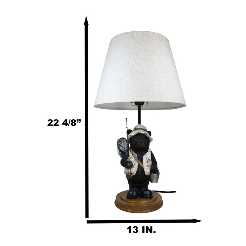 - This Fisherman Bear Table Lamp comes with the linen shade as pictured. It is made of polyresin, hand painted and polished, the quality finish is superb! Because all our products are individually hand painted work of art, the color tone may vary from the pictures.