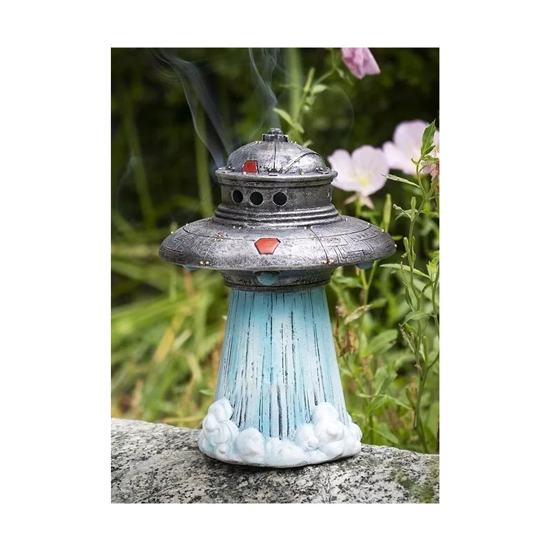 Ebros Gift Flying Saucer Spaceship UFO Alien Craft Taking Off Backflow Incense Cone Burner