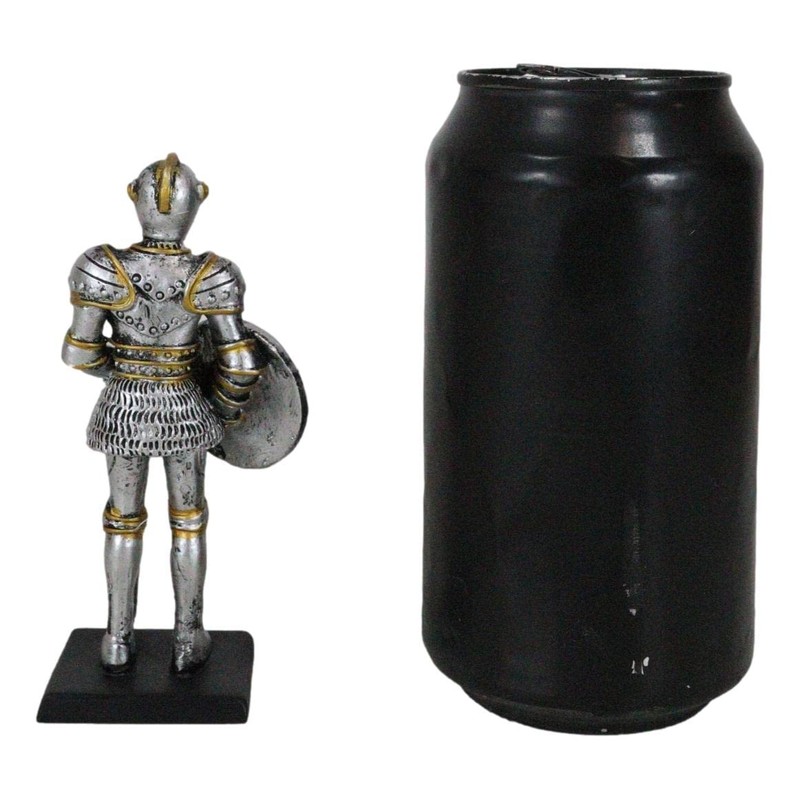 - This medieval knight miniature figurine is 4" tall, 2" long and 1.5" deep approximately.