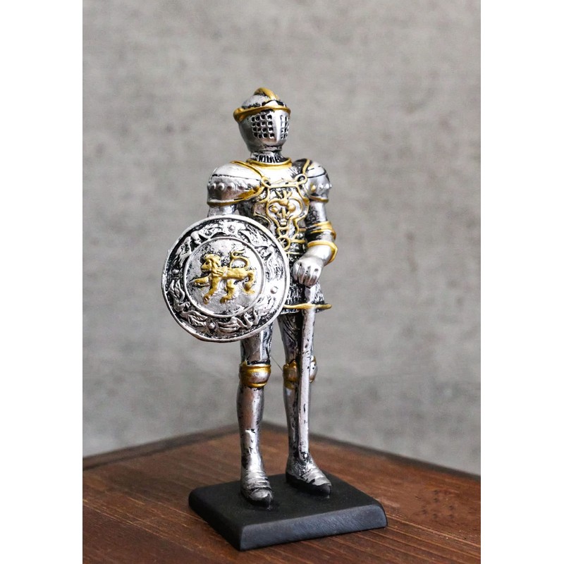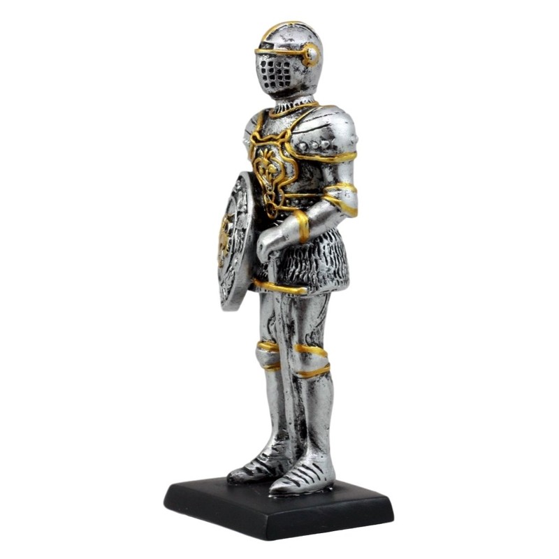 - This medieval knight miniature figurine is made of high quality polyresin. It is meticulously hand painted and polished. Color tone may vary from pictures.