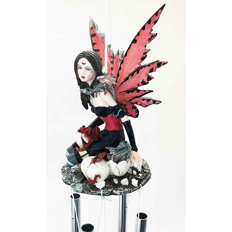 Ebros Gift Red and Black Gothic Tribal Fairy with Dragon Hatchlings in Eggs Resonant Relaxing Wind Chime Garden Patio Faery Garden Decorative Accent