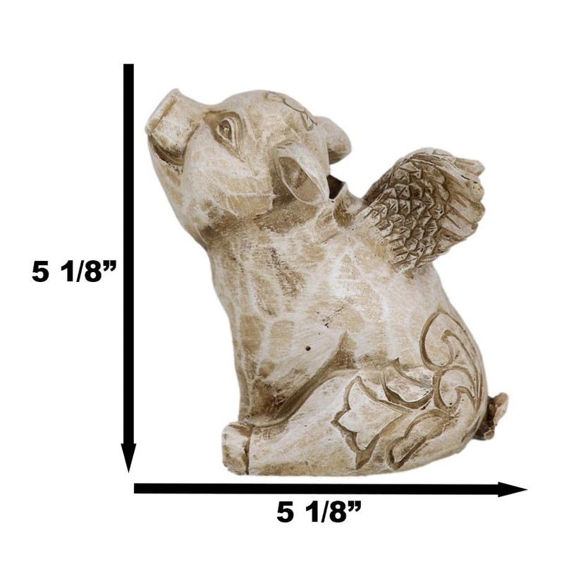 Ebros Gift Rustic Animal Farm Country Farmhouse Hog Heavens Flying Baby Angel Pig in Faux Wooden Carved Distressed Finish Piggy Coin Money Bank Jar Container Figurine