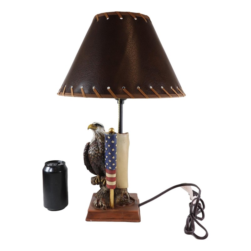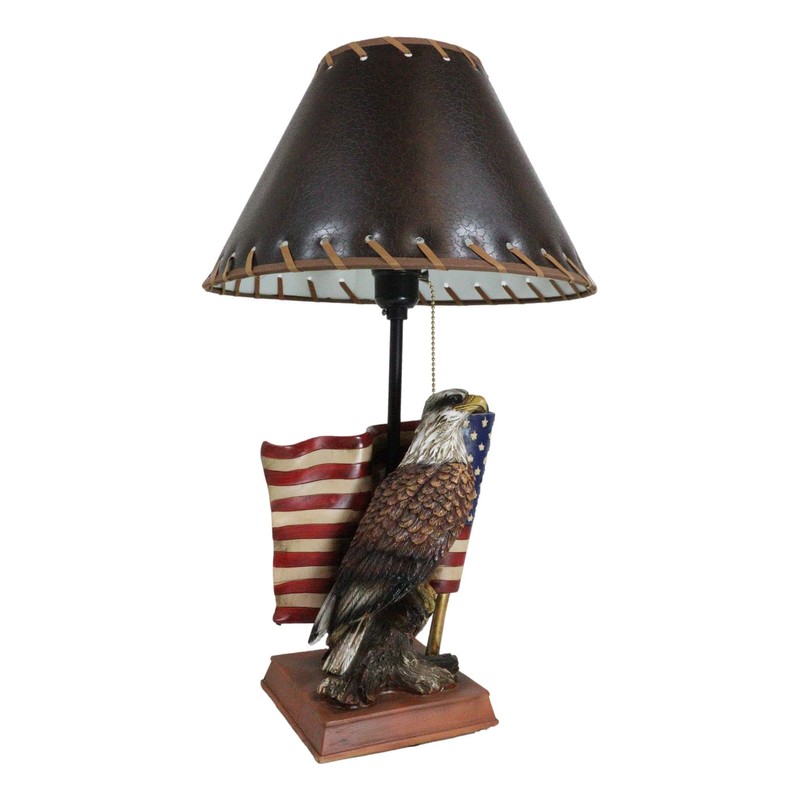 • Upheld for generations as the image of freedom, the American Bald Eagle comes to life in this impressive, finely detailed Table Lamp Sculpture. Add style and patriotism to the office, living room, study room or what have you.