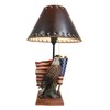 Ebros Gift Rustic Patriotic American Emblem Bald Eagle with Star Spangled Banner Flag Memorial Desktop Side Table Lamp with Brown Faux Leather Laced Shade Land of The Brave and Free