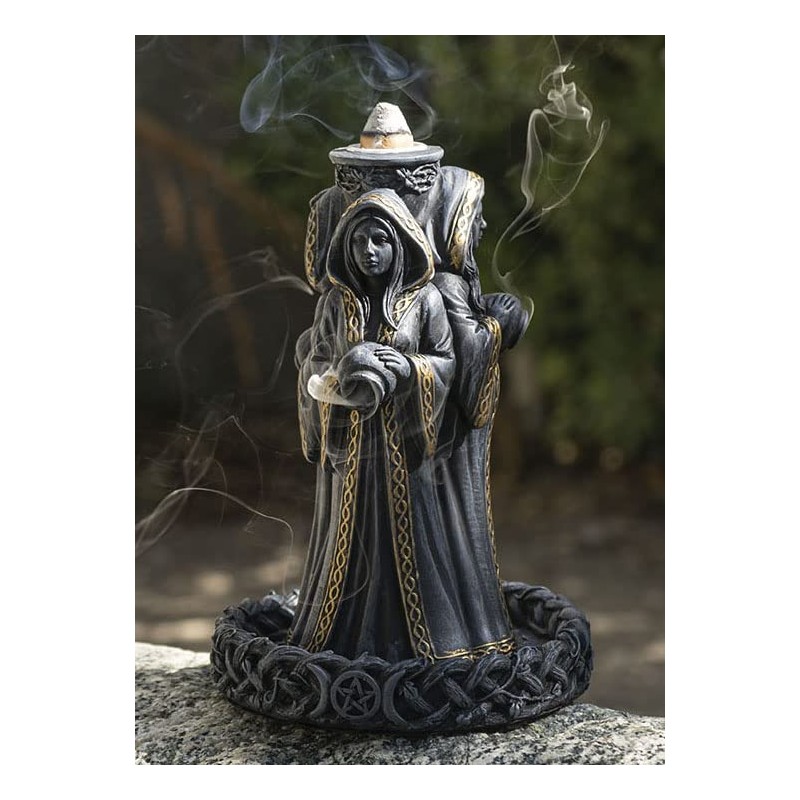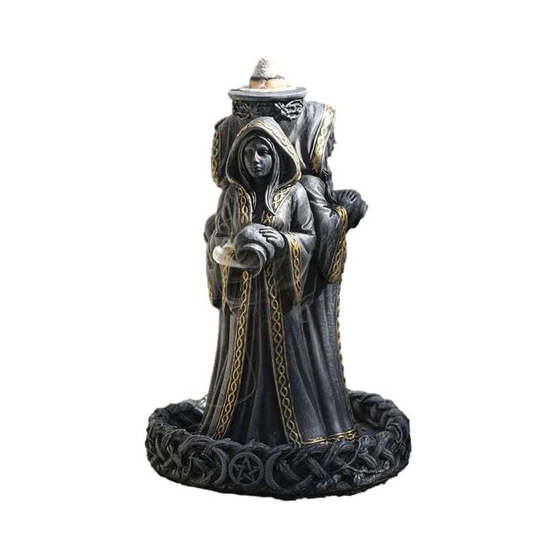 - This Mother Maiden Crone Triple Goddess Backflow Incense Burner is made of polyresin, hand painted and polished.
