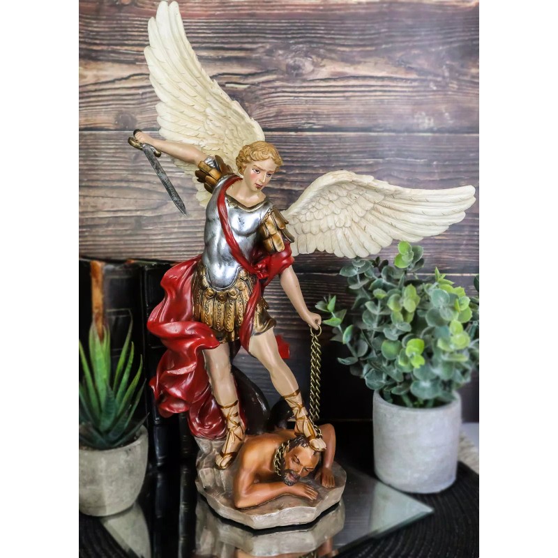 • This Beautiful Saint Michael The Archangel Statue is made of high quality designer resin, individually handpainted and polished. Because each piece is partially hand crafted, color tone may vary from pictures.