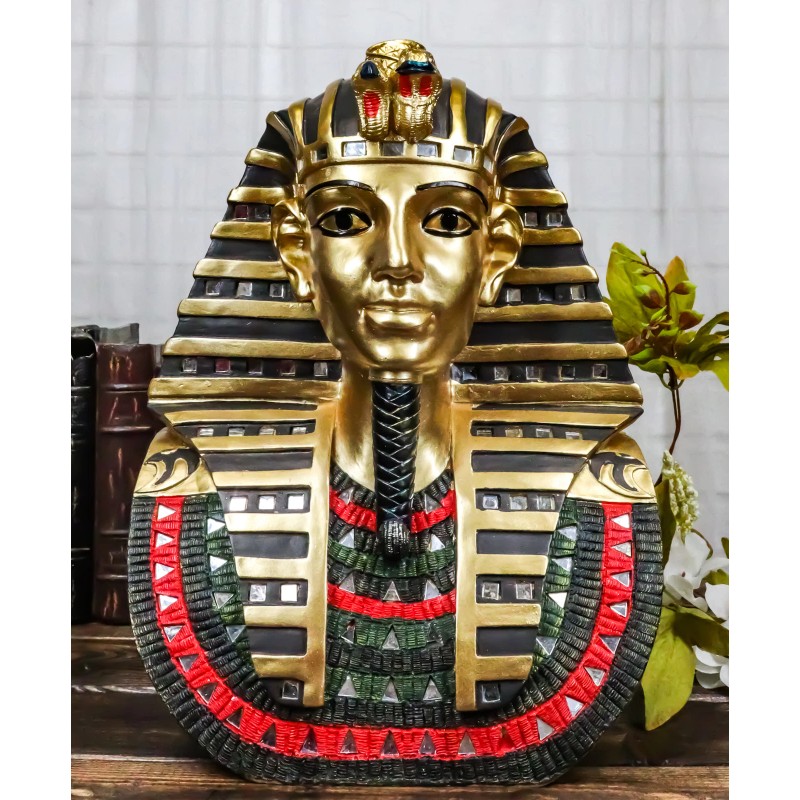 • This Large Golden Mask Of King Tut Bust Statue is made of designer composite resin, hand painted and polished individually.