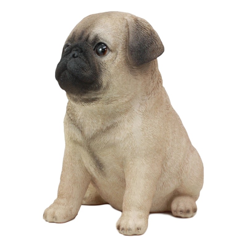 • This Realistic Pug Figurine is made of resin, hand painted and polished individually by our artisans. The Statue is furnished with glass eyes material, making it look like a real dog and his body is textured to give it a bold detailed feel. Color Tone may vary from pictures.