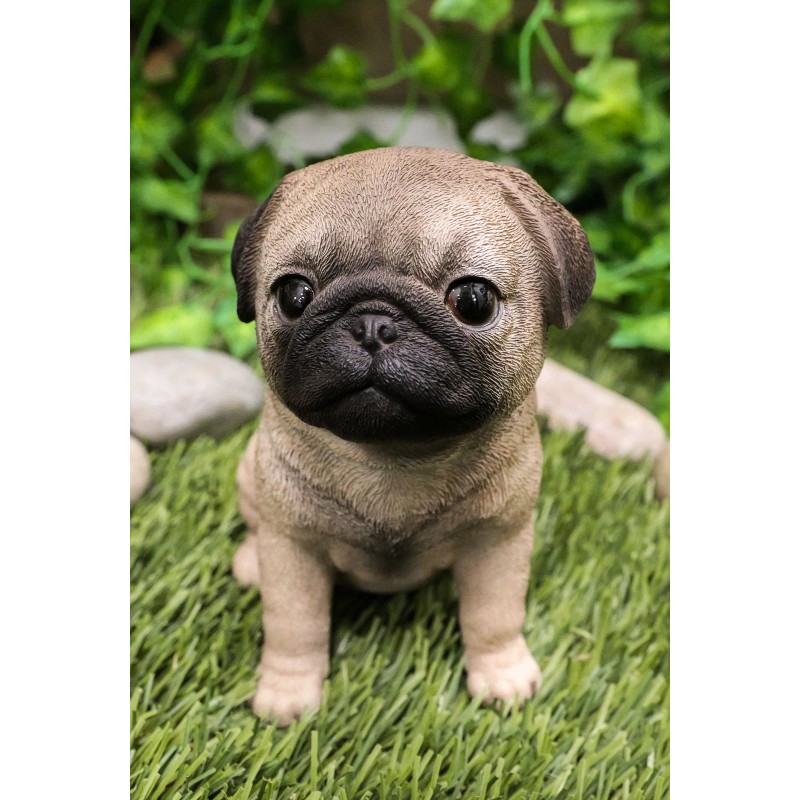 • This Realistic Pug Figurine is approximately 6" tall and 5.5" long and 4" deep. It is designed to set on flat surface. It weighs about 1 pound.