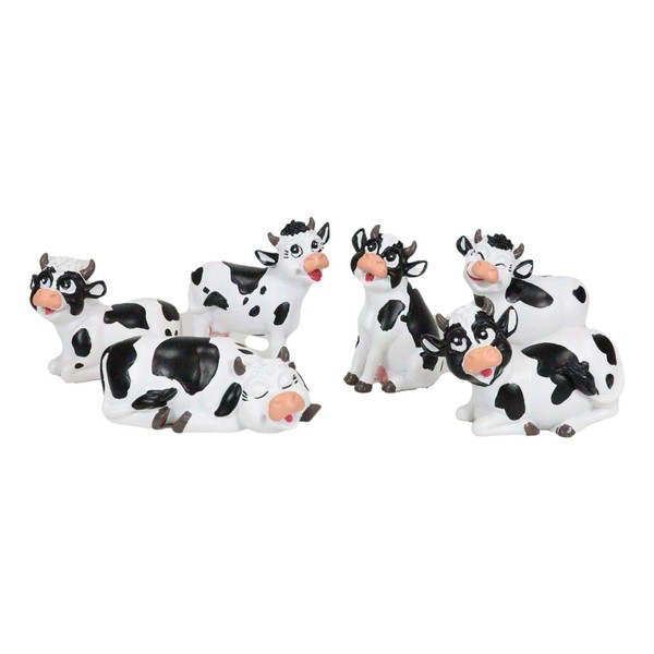 Ebros Set of 6 Whimsical Cute Bovine Holstein Cows in Multiple Poses Figurines Cattle Cow Animal Collectibles Countryside Farm Meadows Pasture Cow Statues