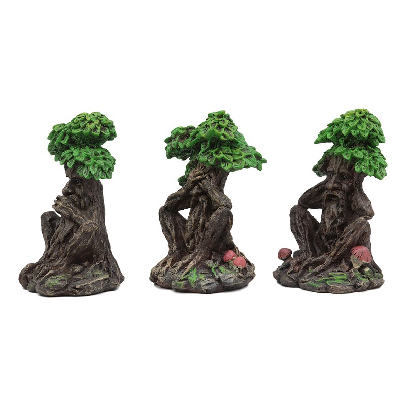 Ebros Wiccan Forest Spirit Deity See Hear Speak No Evil Greenman Tree Ents Statue Set of Three 5.25" Tall Celtic Neopagan Cernunnos Decorative Figurines