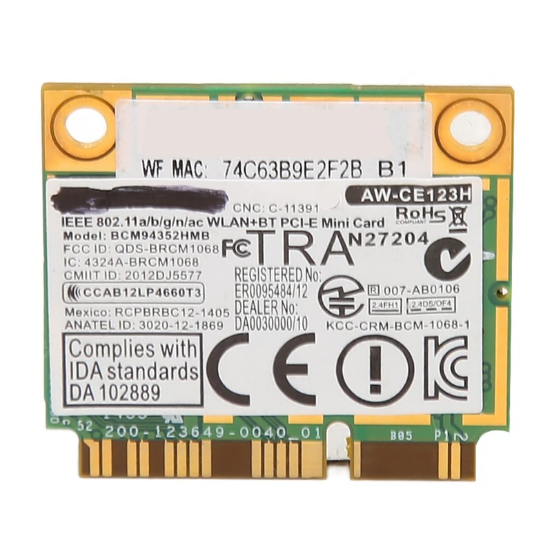 - HIGH SPEED : AW CE123H BCM94352HMB miniPCIE adapter supports 2.4G 300Mbps 5G 867Mbps band rate.