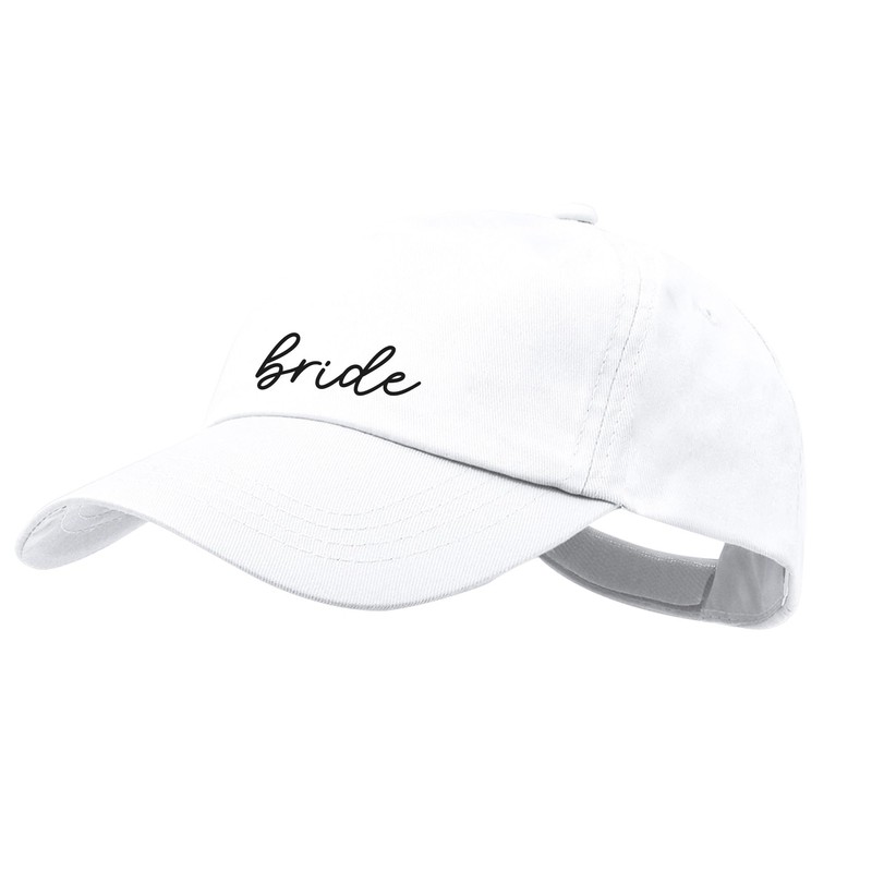 - The chic white cap is adorned with "Bride" for the leading lady, while the sleek pink and light pink caps feature " Team Bride" for the entire bridal party, making coordinating effortless.