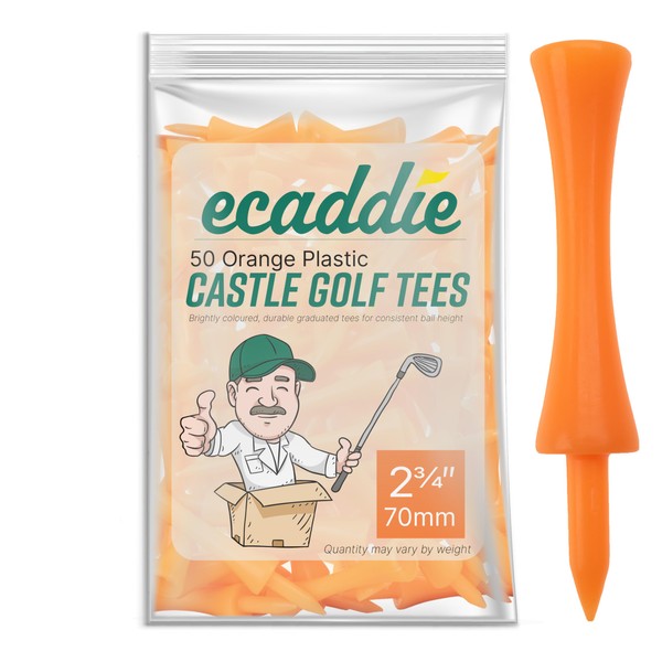 ECADDIE Orange 70mm Plastic Castle Golf Tees (50 Pack)