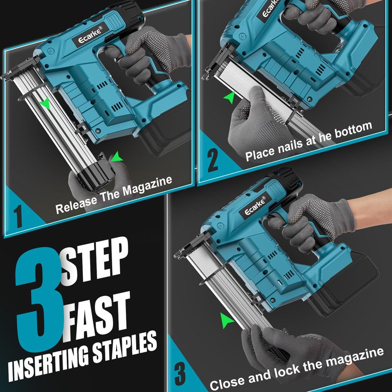 - 【Versatile & Ready】This cordless brad nailer for Makita 18V batteries tackles crown molding, baseboards, furniture fixes, crafts, and fencing. Your essential cordless nail gun for quick project-switching – no compressor, no limits.