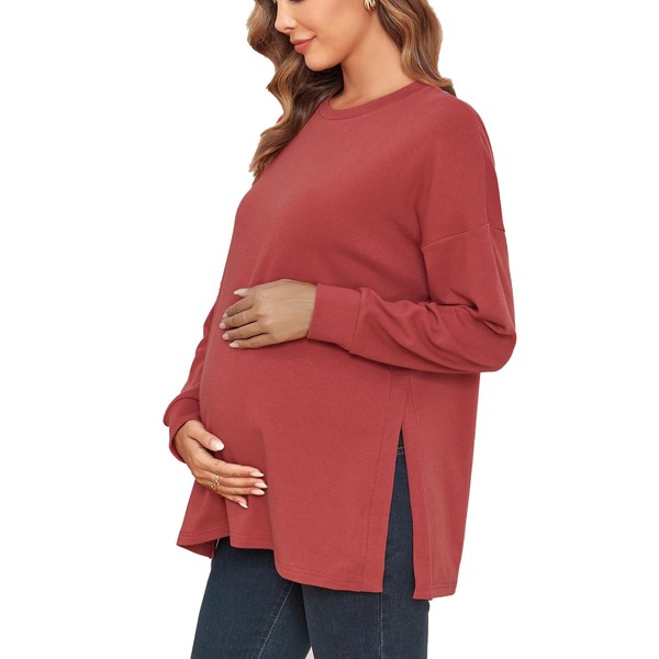 Ecavus Women's Casual Maternity Shirts Long Sleeve Soft and Comfy Pregnancy Tee Tops Side Split Maternity Clothes