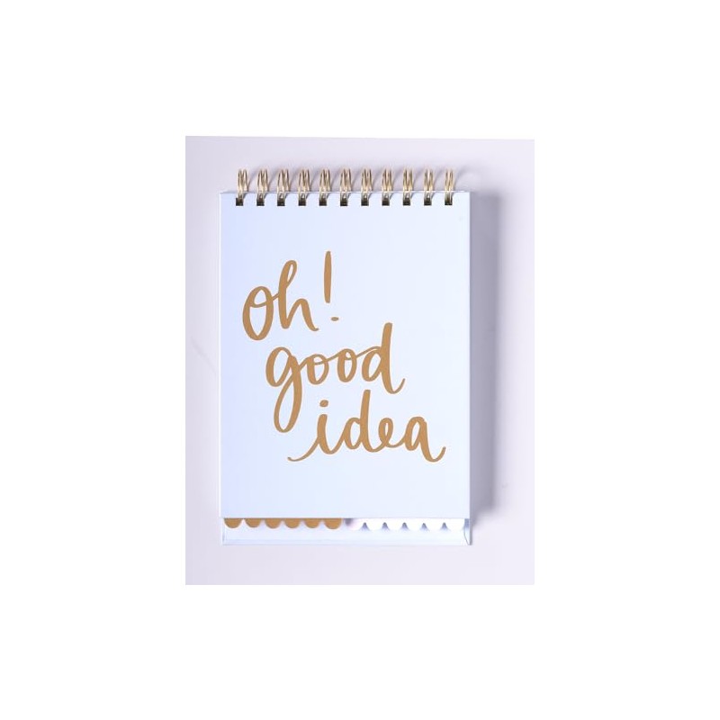 - Carefully crafted, the white hardcover spiral notebook features the quote "Oh! Good Idea" on top of a light blue cover to keep you motivated