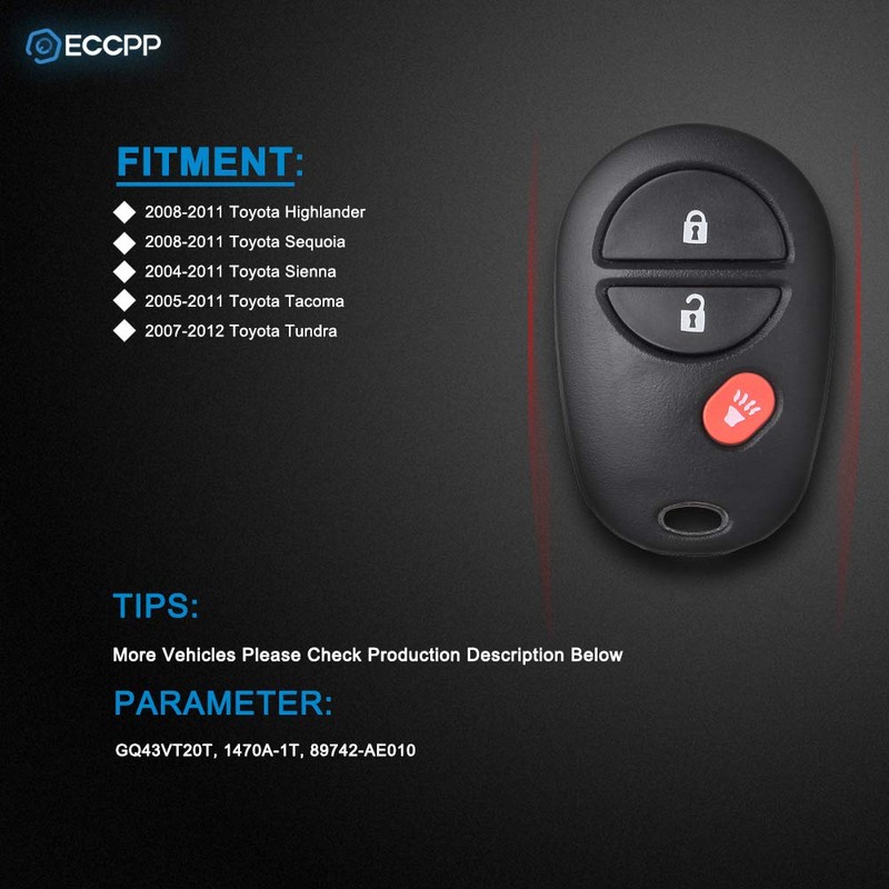 ECCPP 315MHz Keyless Entry Remote Key Fob 2007-2016 Fit for Toyota Sienna 3.5L 2007-2014 Fit for Toyota Tundra 4.0L (Pack of 1)