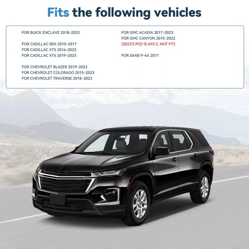 2015-2022 Chevrolet Colorado (2023 has two different PCD, 6x120 (Generation: II (GMT 31XX)) or 6x5.5 (Generation: III (GMT 31XX-2)), Pls confirm first)