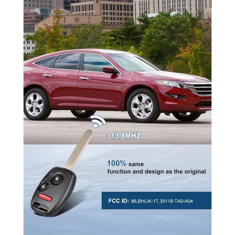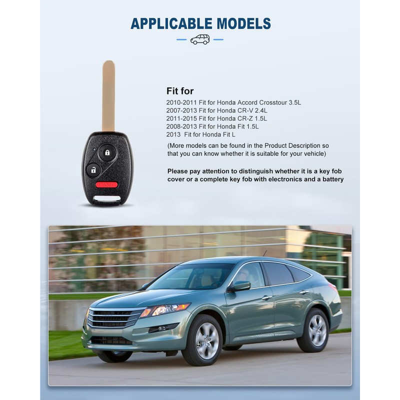 ECCPP MLBHLIK-1T Keyless Entry Remote Car Key Fob Replacement for 2010-2011 Fit for Honda Accord Crosstour 3.5L 2007-2013 Fit for Honda CR-V 2.4L 3 Buttons Pack of 1