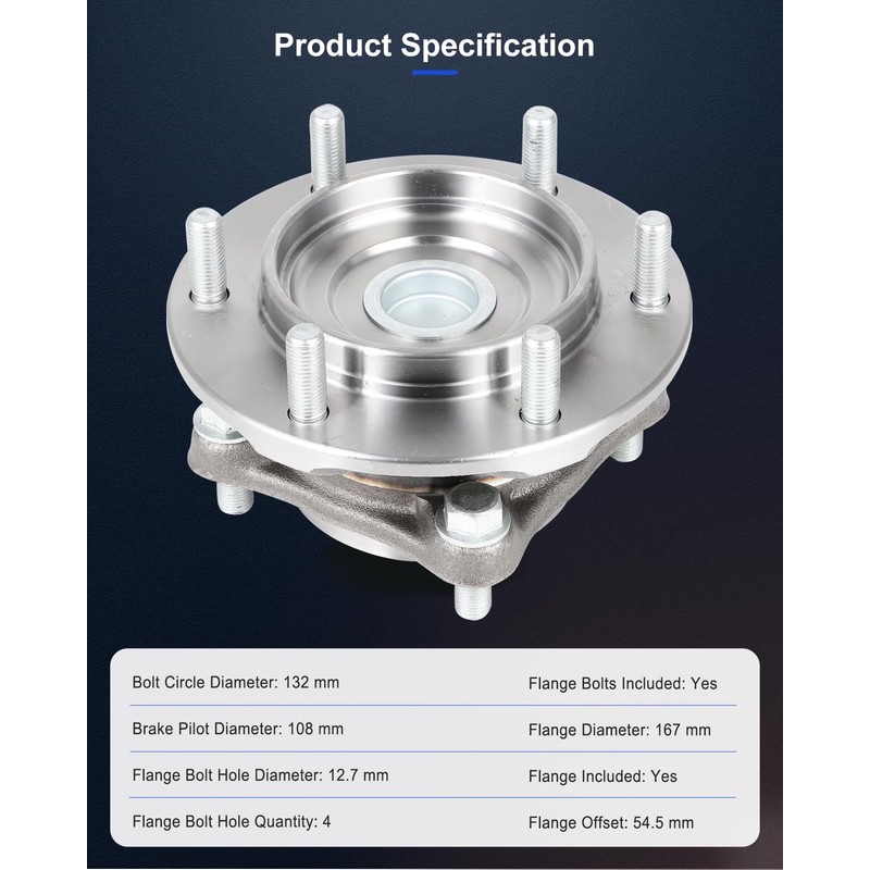 - Complete Wheel Hub and Bearing Assembly Solution:Our wheel hub and bearing assembly offers a complete solution for your vehicle's needs. It combines both components into one easy installation, saving you time and effort