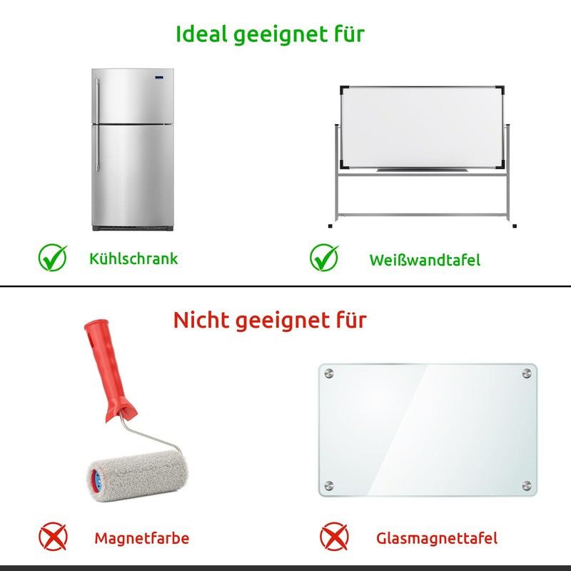 - BELIEBIG WIEDERBESCHREIBBAR: Die Schrift lässt sich vom Kühlschrankmagneten rückstandslos entfernen. Einfach mit einem feuchten Tuch abwischen und wieder beschreiben.