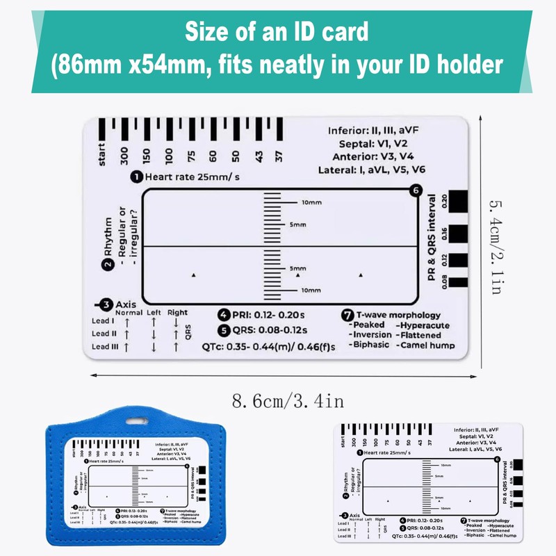 - Measure with Ease: Our ecg pocket card enables quick and accurate measurement of heart rate, PR interval, QRS complex, and QT intervals, as well as ST elevation/depression. It's an indispensable addition to your ID badge for on-the-spot analysis