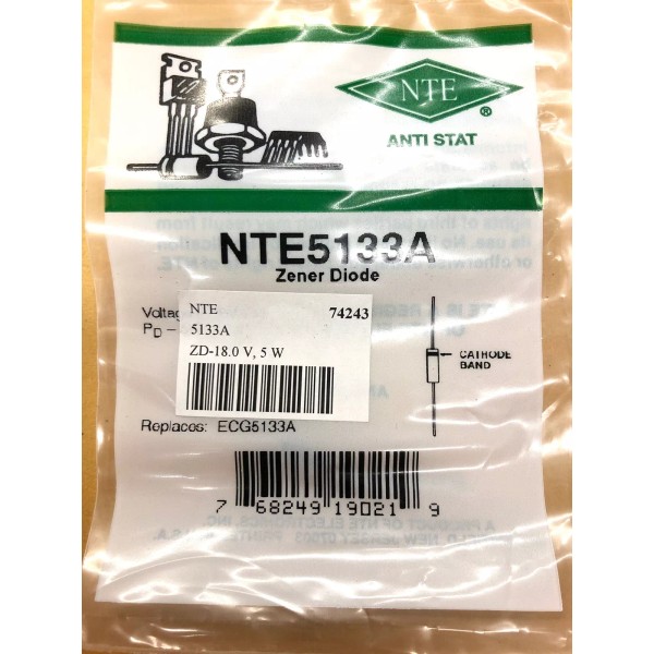 NTE NTE5133A, 18V @ 5W Zener Diode 5% ~ DO-201 Axial Lead Case (ECG5133A)