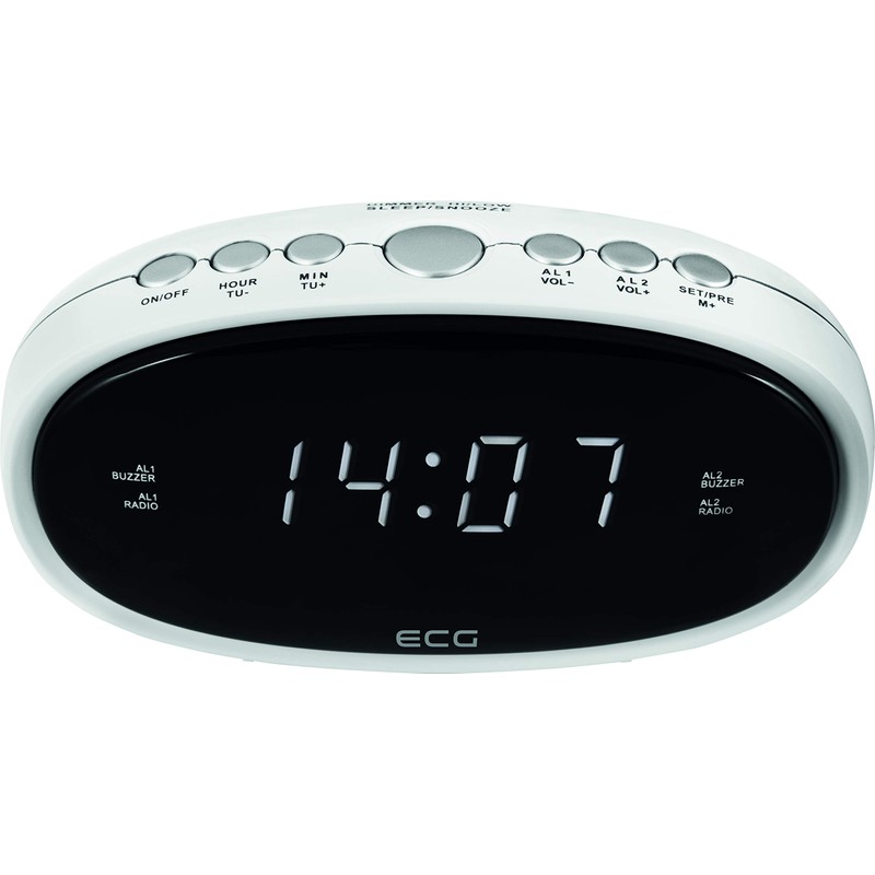 ECG RB 010 White Radio Alarm Clock - FM Tuner; 10 Dialling Codes; Digital Clock/Alarm Clock; Alarm Clock Function; Off Timer White, 1