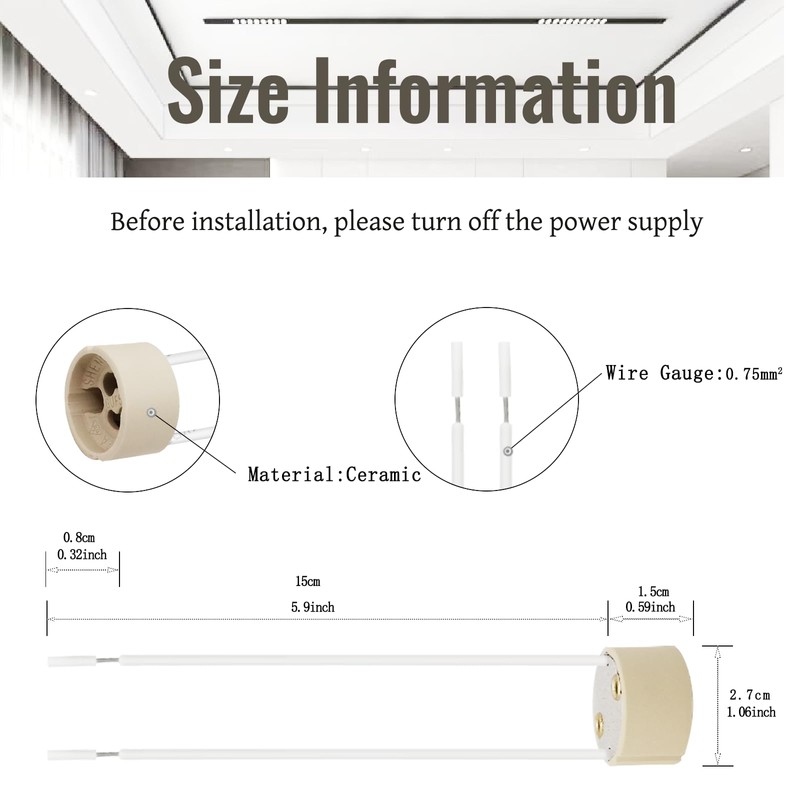 - Material: Ceramic base and Silicon wire (CSA 0.75mm², length 5.9inch/150mm.).