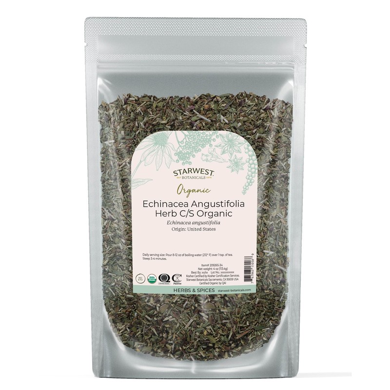 Starwest Botanicals Dried Echinacea Angustifolia Organic - Loose Leaf Herb for Tea, Tinctures, & Natural Herbal Blends, Cut & Sifted, Certified Kosher, Non-GMO - 4 oz Pouch