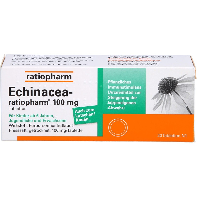 Echinacea-ratiopharm 100 mg tablets vegetable immunostimulant, pack of 20 tablets
