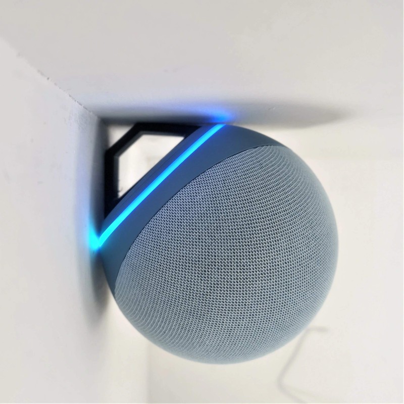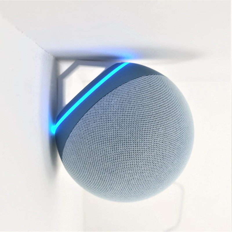 - Note: This is for the Smaller Echo 'Dot'. Discreet corner wall bracket designed to fit the echo dot 4th generation ONLY. Cradles the device when mounted, simply slides in for a very snug flush fitment. Sturdy support from all directions to prevent the device from being knocked off of the wall. Great for freeing up surface space in areas like your kitchen, bathroom, bedroom and more. Useful for managing your entertainment setup and keeping things tidy.