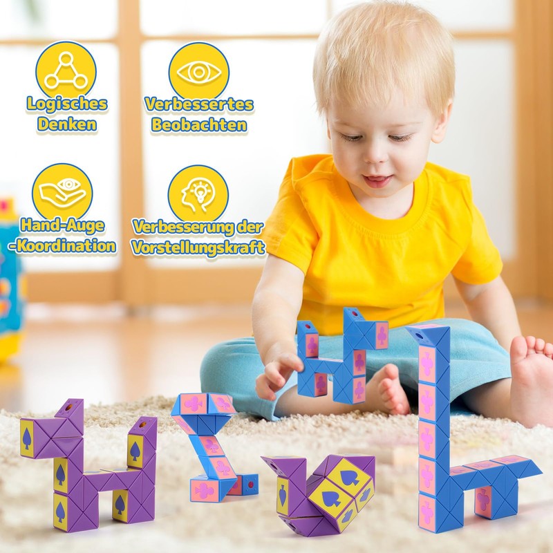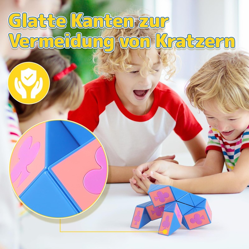 - Educational snake cube: ECHOCUBE twist speed snake toys combine the elements of poker in a colourful and creative way. The bright colours and patterns easily attract children's attention and help them recognise colours. While the children with this snake toy, it improves their thinking skills, spatial imagination and hand-eye coordination.