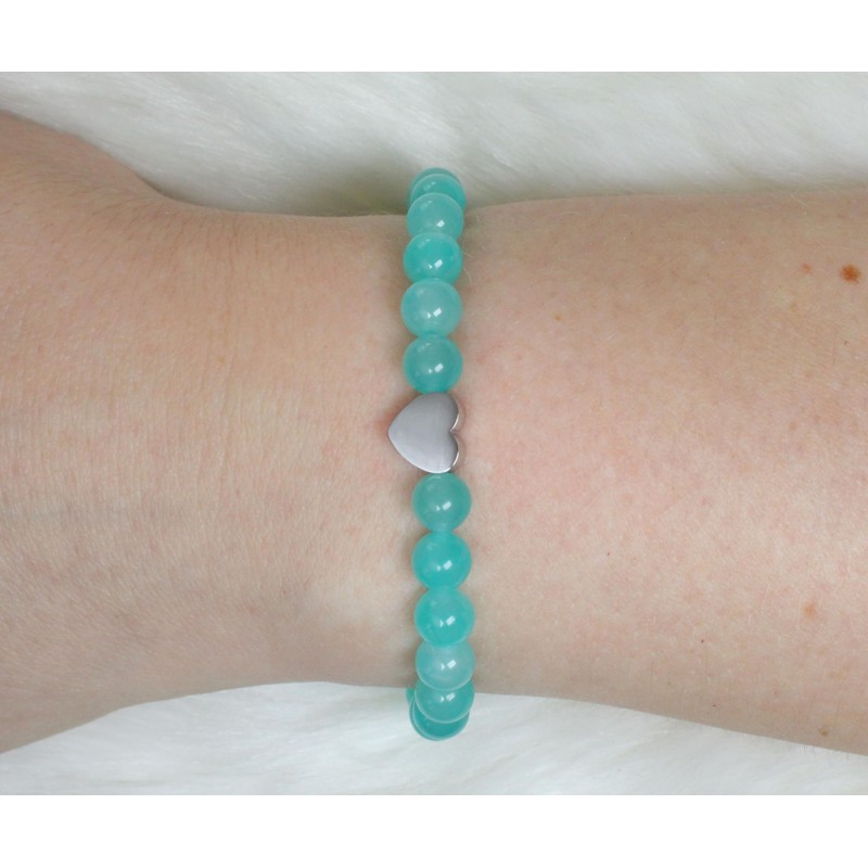 Echtes Amazonit AAA Edelstein Armband mit 6mm Perlen und Edelstahlherz - verschiedene Längen - Heilstein Schutzstein Talisman Glücksbringer Geschenk (Amazonit, 14CM)