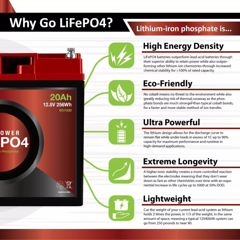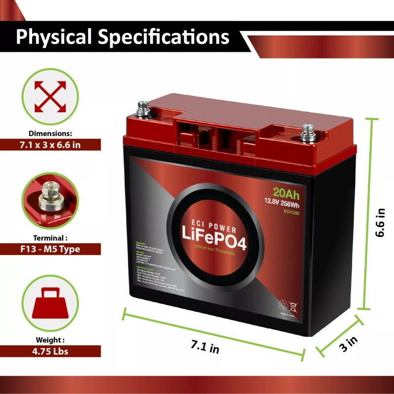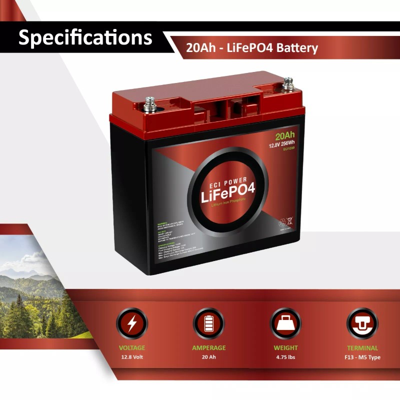 • 1 x 12V 20AH LiFePO4/LFP Battery