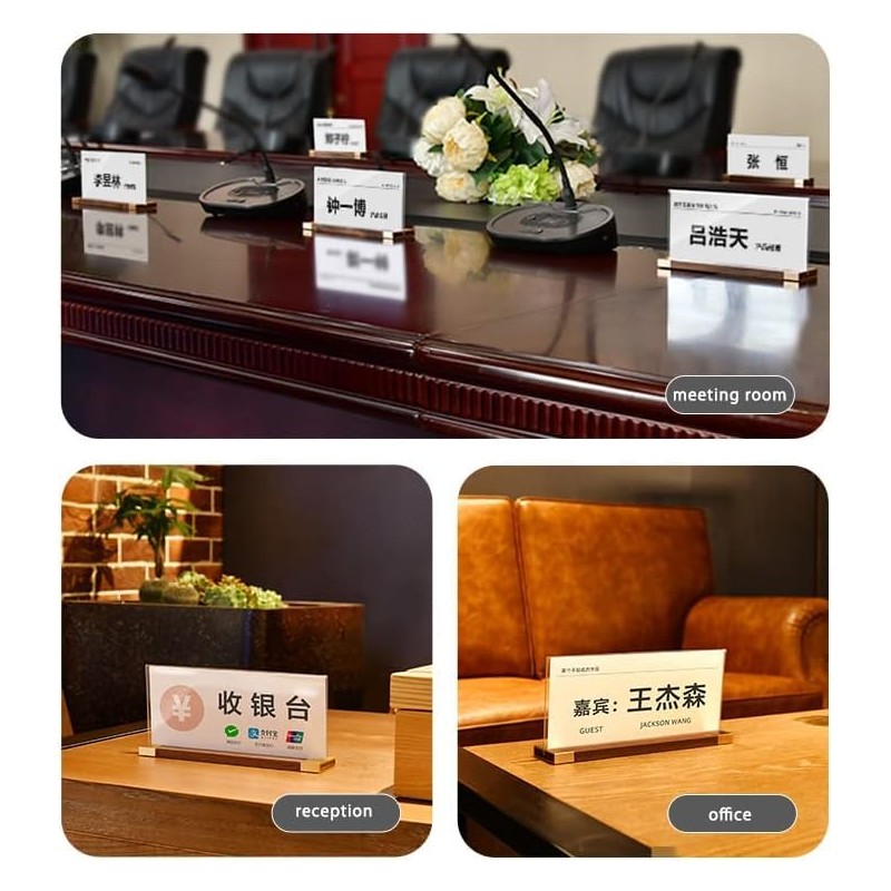 ECKEK Desk Name Plate Holder, Acrylic Sign Holder for Table Display, Wood Base Double Sided Nameplate 200*90MM/7.87x3.54 inches