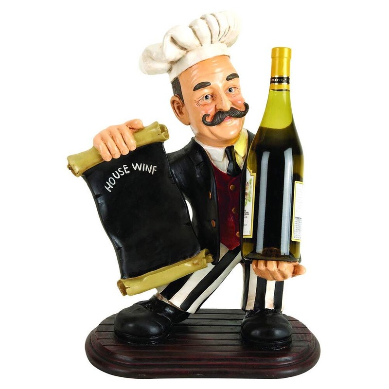 - Eclectic 20 X 13 Inch Bistro Chef Figurine Wine Holder Multi Color Modern Contemporary Ceramic