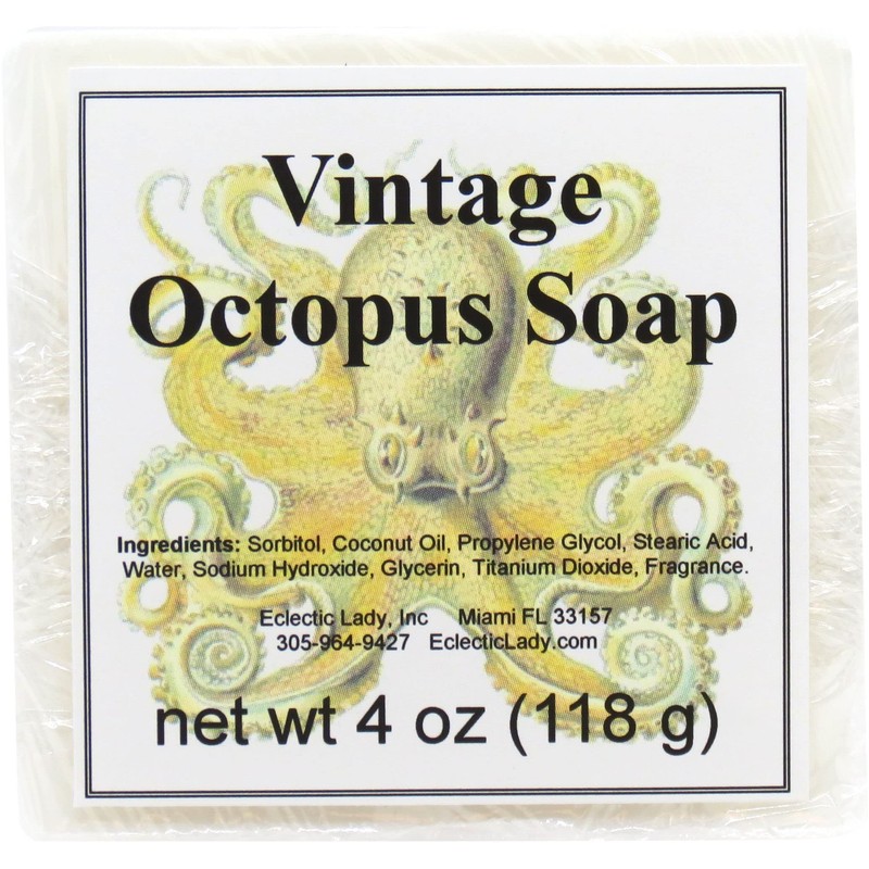 - VINTAGE OCTOPUS DESIGN: Our glycerin soap features a vintage octopus with swirling arms on top. The octopus is known for its eight arms and bulbous head. They are known to squeeze in and out of tight spaces.