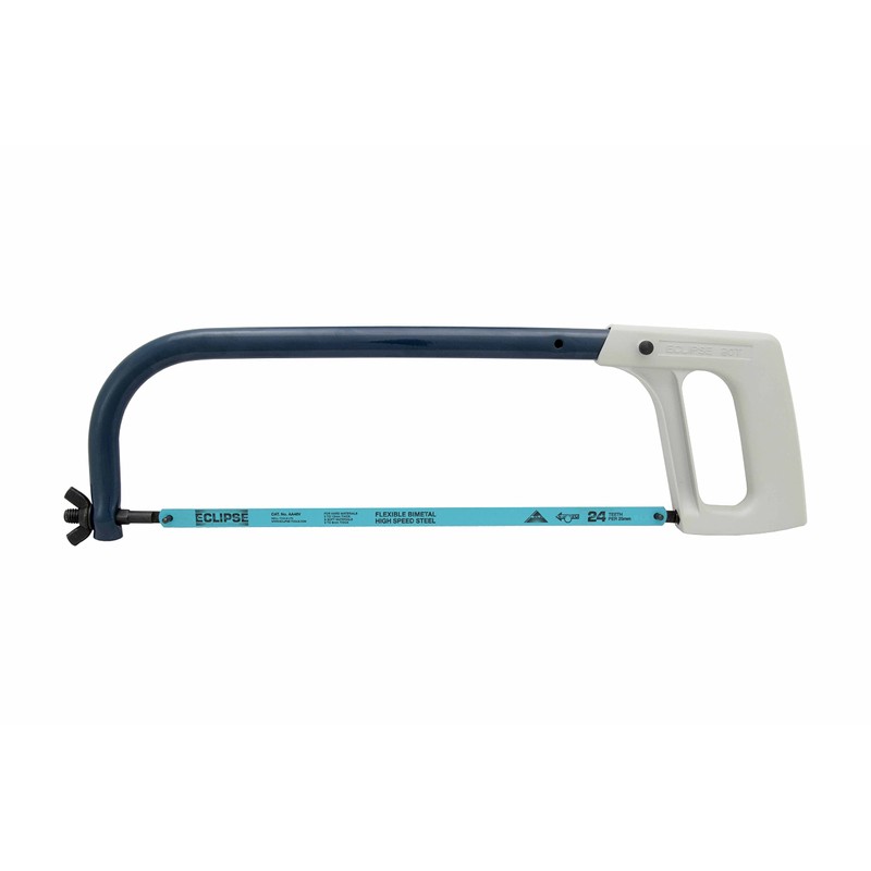 A lightweight, economical hacksaw with a strong, box section tubular steel frame and a comfortable and durable cast aluminium handle. In addition, the extra long location pin gives increased security of the tensioning bit. Comes complete with a bimetal blade.Eclipse is a world-wide brand, distributing products throughout the world and is part of the Spear & Jackson Group, whose foundations were laid in 1760. Since our beginnings centuries of experience and innovation have resulted in the materials and development expertise that resides within the company today; and "continuous innovation" is at the heart of the company's ethos. This drive to improve product materials and performance can be seen in many different ways across the company's 3,000 lines. The organisation has come a long way since 1760, and the Spear & Jackson Group now manufactures and distributes garden tools, metrology equipment, woodworking tools, metal working tools, saw blades and magnetic equipment, with divisions across England, France and Australia.Our tools are manufactured to a high quality standard and offer superb service and longevity; guaranteed against defects in manufacturing, subject to normal wear & tear and the provision of reasonable care and maintenance. This does not affect your statutory rights.