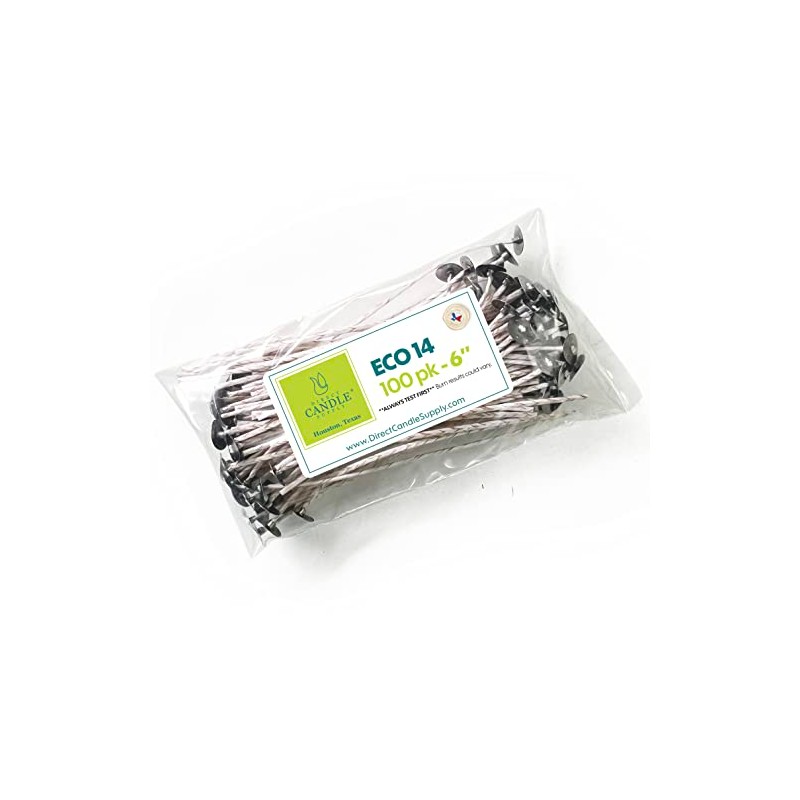 ECO 14 Wicks for Candle Making, 6 inch Pre-Waxed Wicks for Soy Candles with Base 100pk