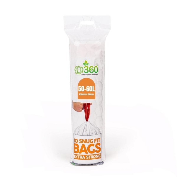Eco Bag BDS Drawstring Bin Liners, LDPE, White, 50-60 Litres