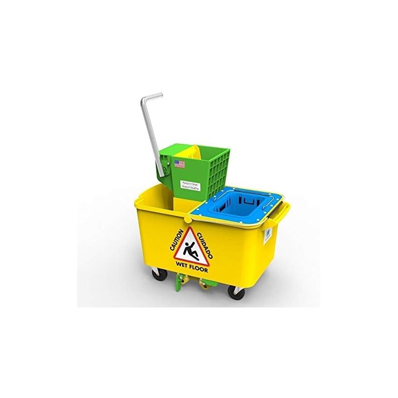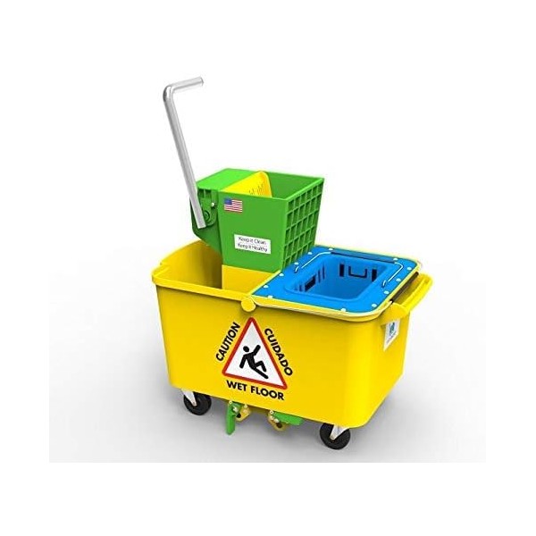 - PRACTICAL DESIGN: Yellow bucket body with clear warning signs, sturdy handle, and smooth-rolling wheels for easy maneuverability
