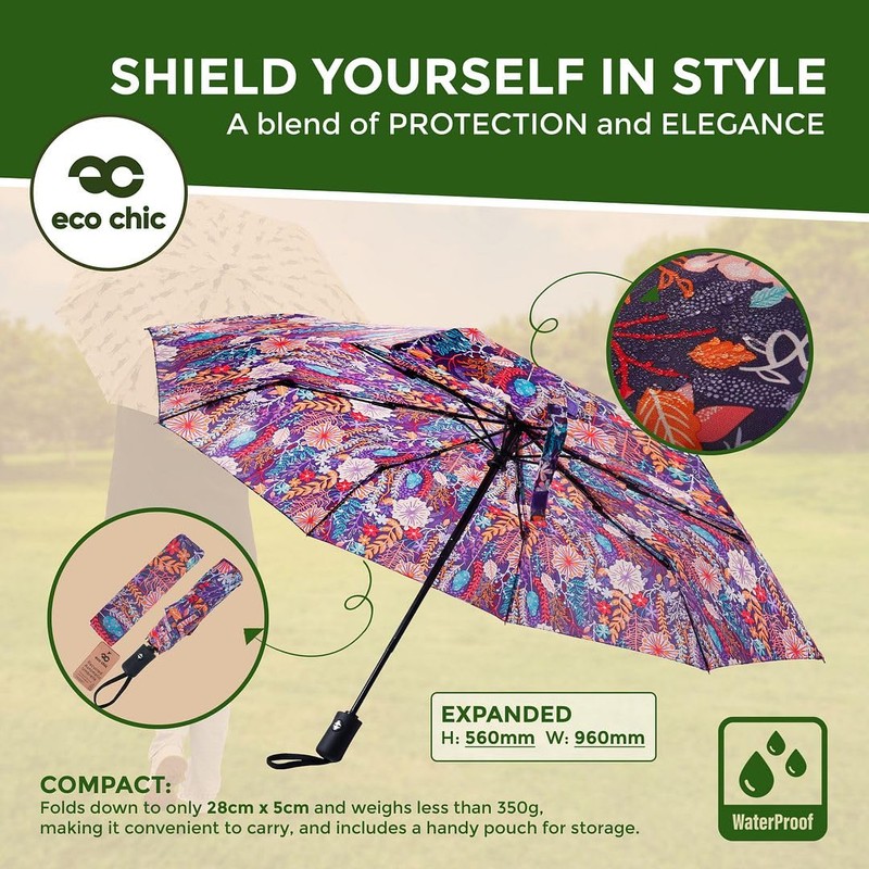 ECO CHIC Automatic Umbrella Windproof Strong Compact Folding Travel Umbrella (Lush Floral Purple)
