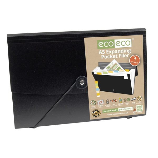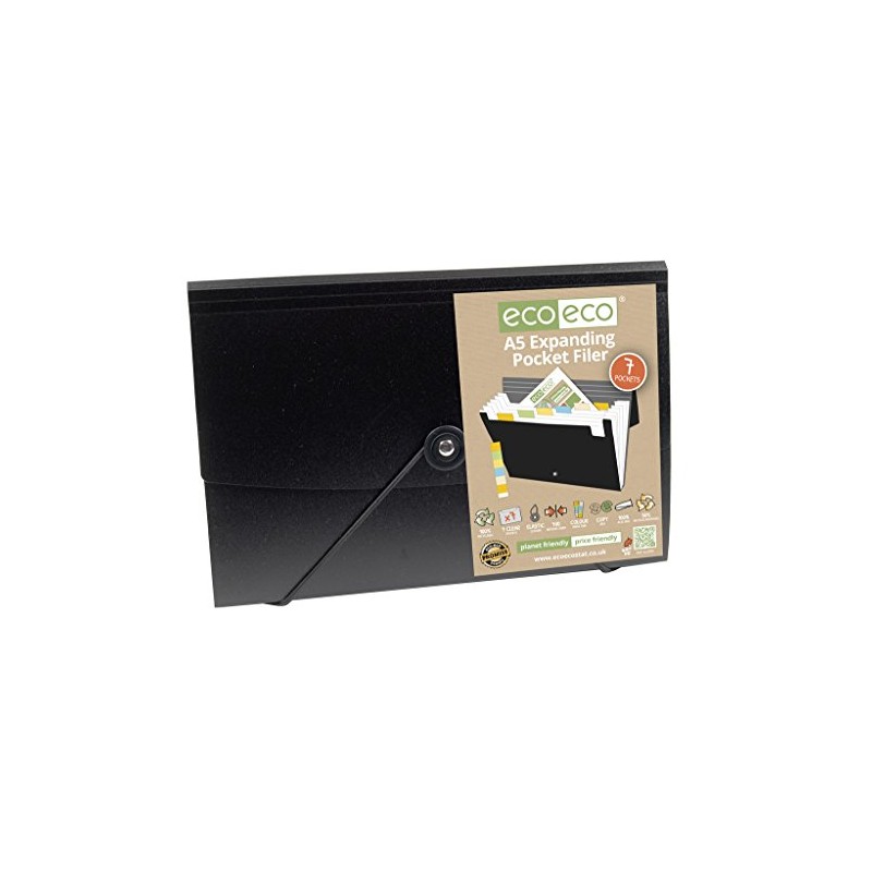 eco-eco 4 x A5 50% Recycled 7 Pocket Expanding Black Accordion File + Tabs